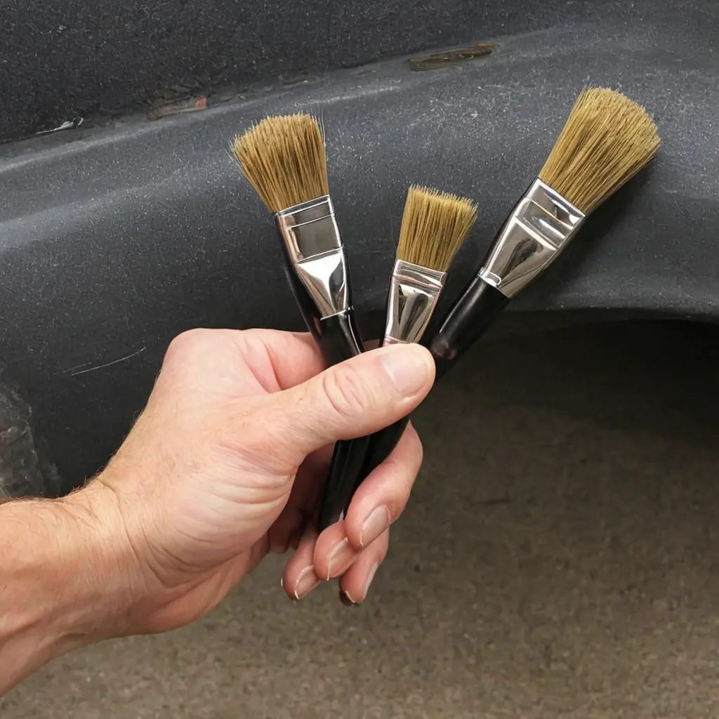 - Колёса и арки — жёсткая синтетическая щётка, стойкая к абразивам и химии; для жёстких налётов — щётка с проволочной основой (с осторожностью).